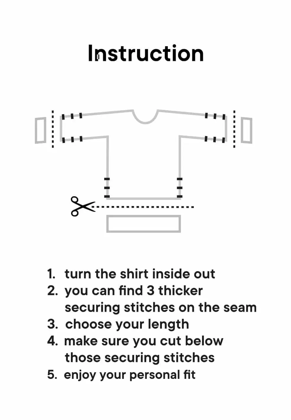 BEAA CUSTOMIZED is as long as you want it to be. The top can be shortened in just a few simple steps, is ideal for layering looks and lies very soft on your skin. Made of 100% organic cotton.