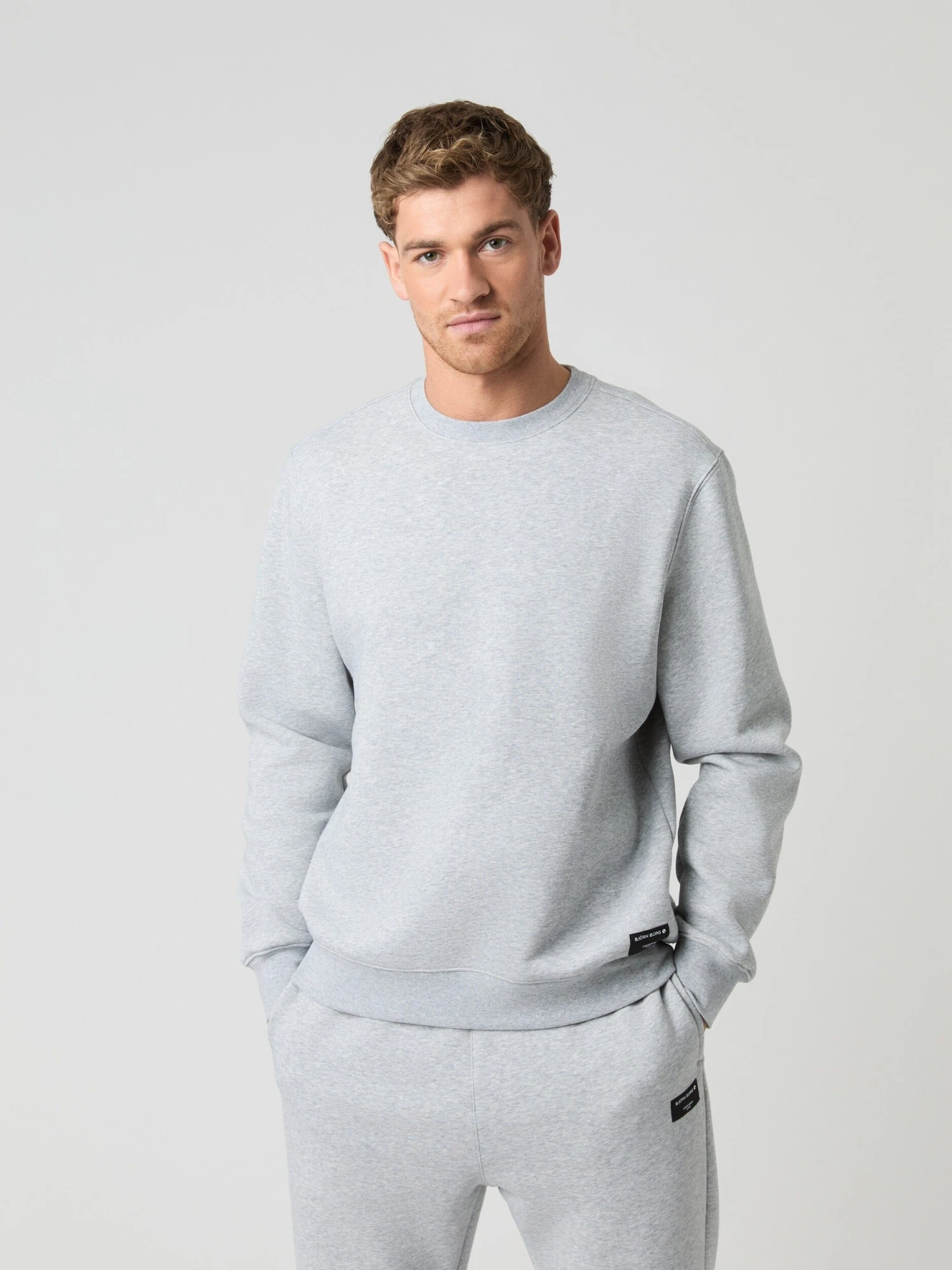 The Björn Borg Centre Sweatshirt for men is made from a soft blend cotton and polyester fleece that’s brushed inside and mechanically stretched. It comes in a regular fit and has a ribbed round neck, cuffs and waist, and a woven logo label on the hip.
