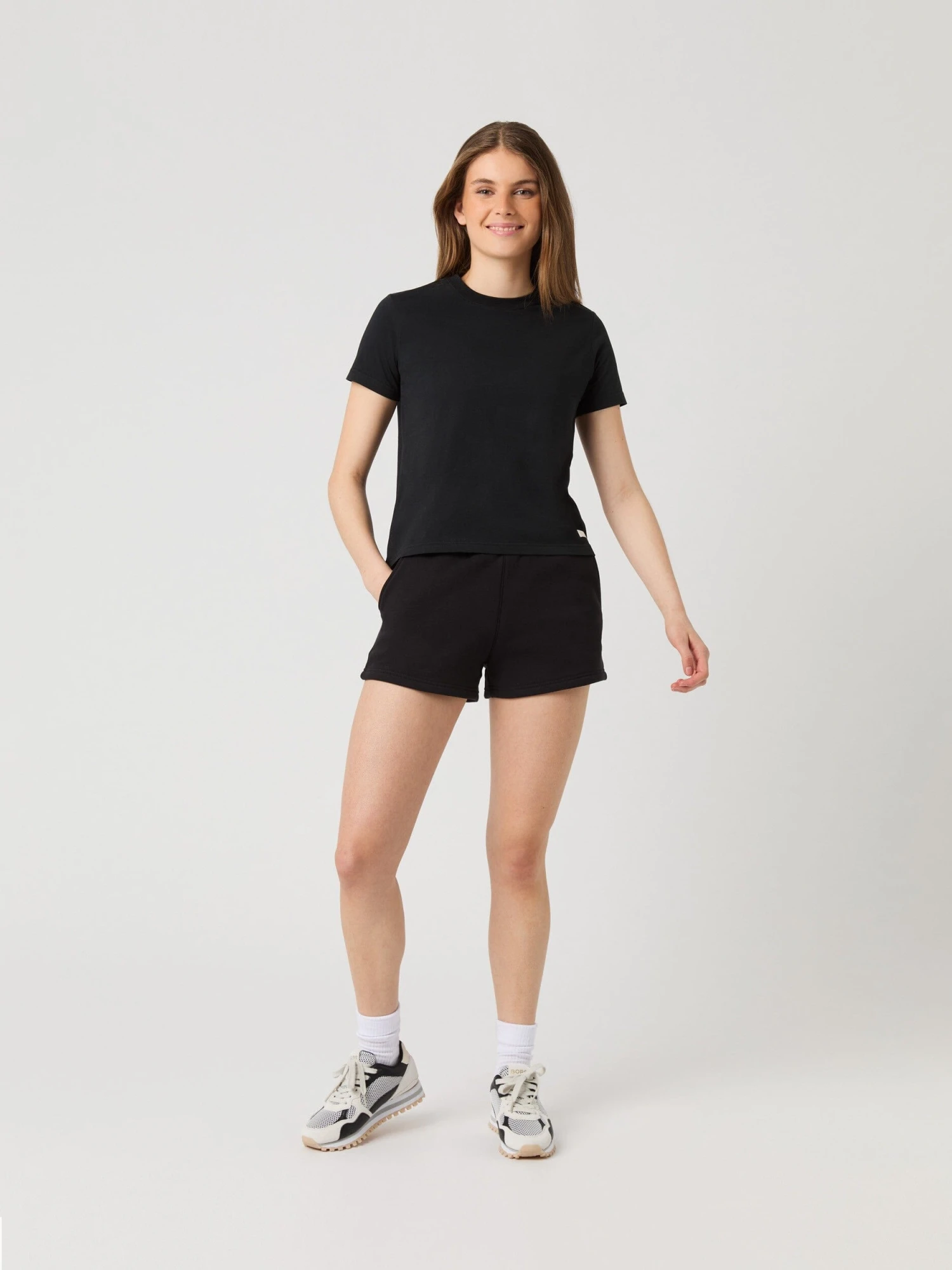 The Björn Borg Centre T-shirt for women is made from a soft 100% cotton quality fabric. It comes in a regular fit with a ribbed and round neck, with a Borg label on the bottom front and a small tennis ball logo on the back of the neck.