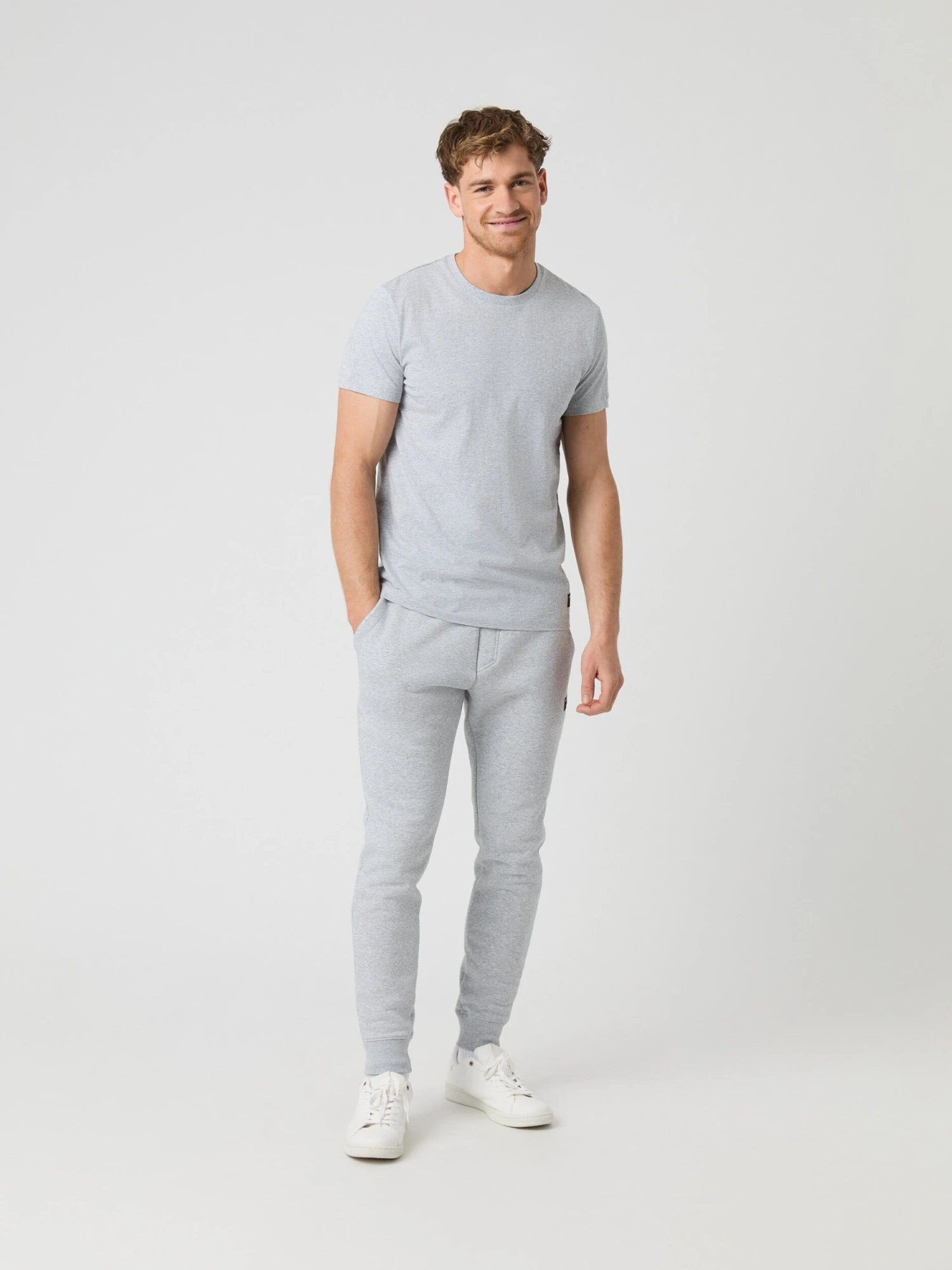 The Björn Borg Centre Tapered Sweatpants for men are made from soft cotton and polyester fleece that’s brushed inside. They have a slim fit, tapered legs and a regular waist with an elastic and drawstring inside for added support and easy adjustment. With ribbed cuffs and waist, two pockets on each side and two pockets on the back for convenience, a fake fly at the front, and a woven logo label on the side leg.