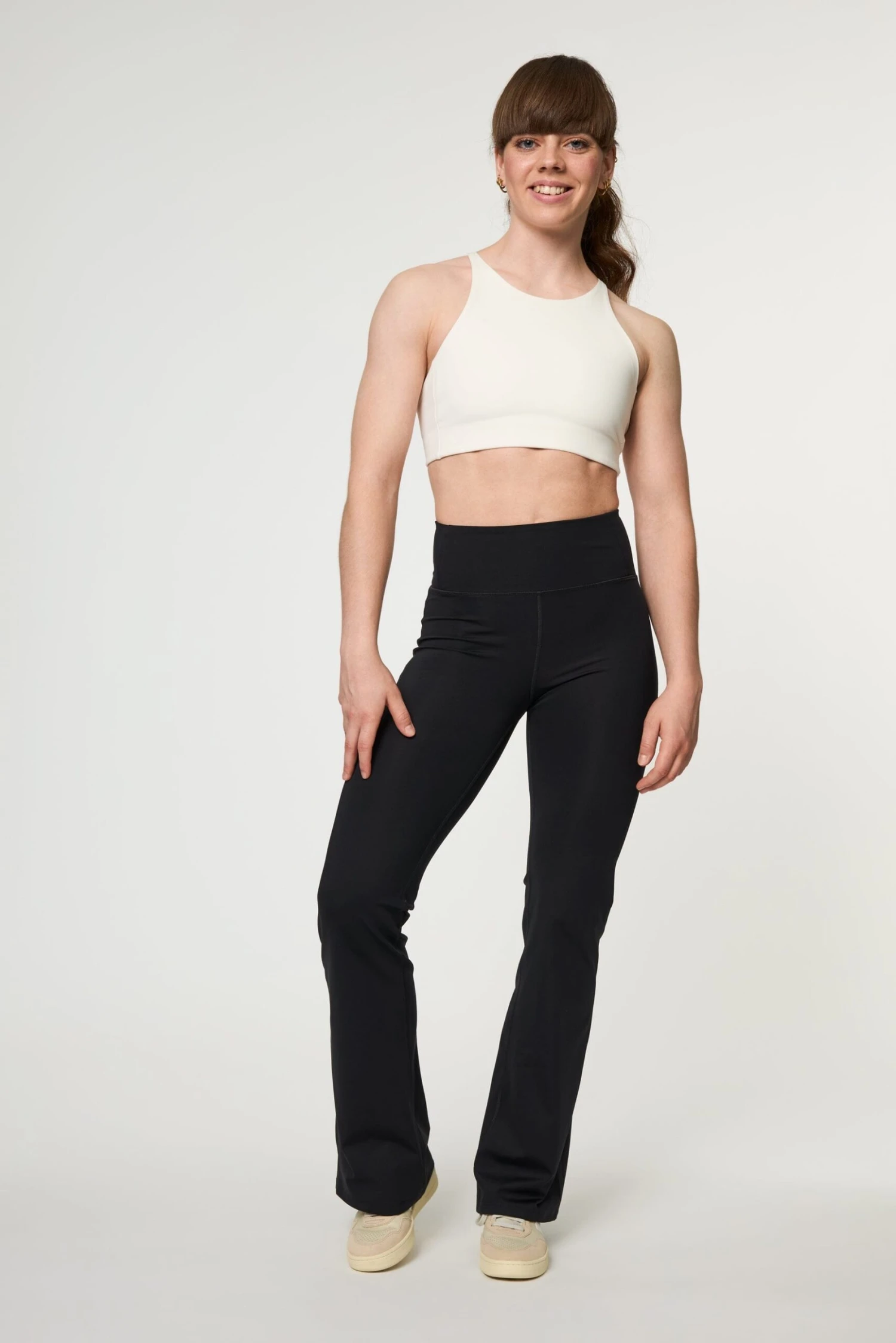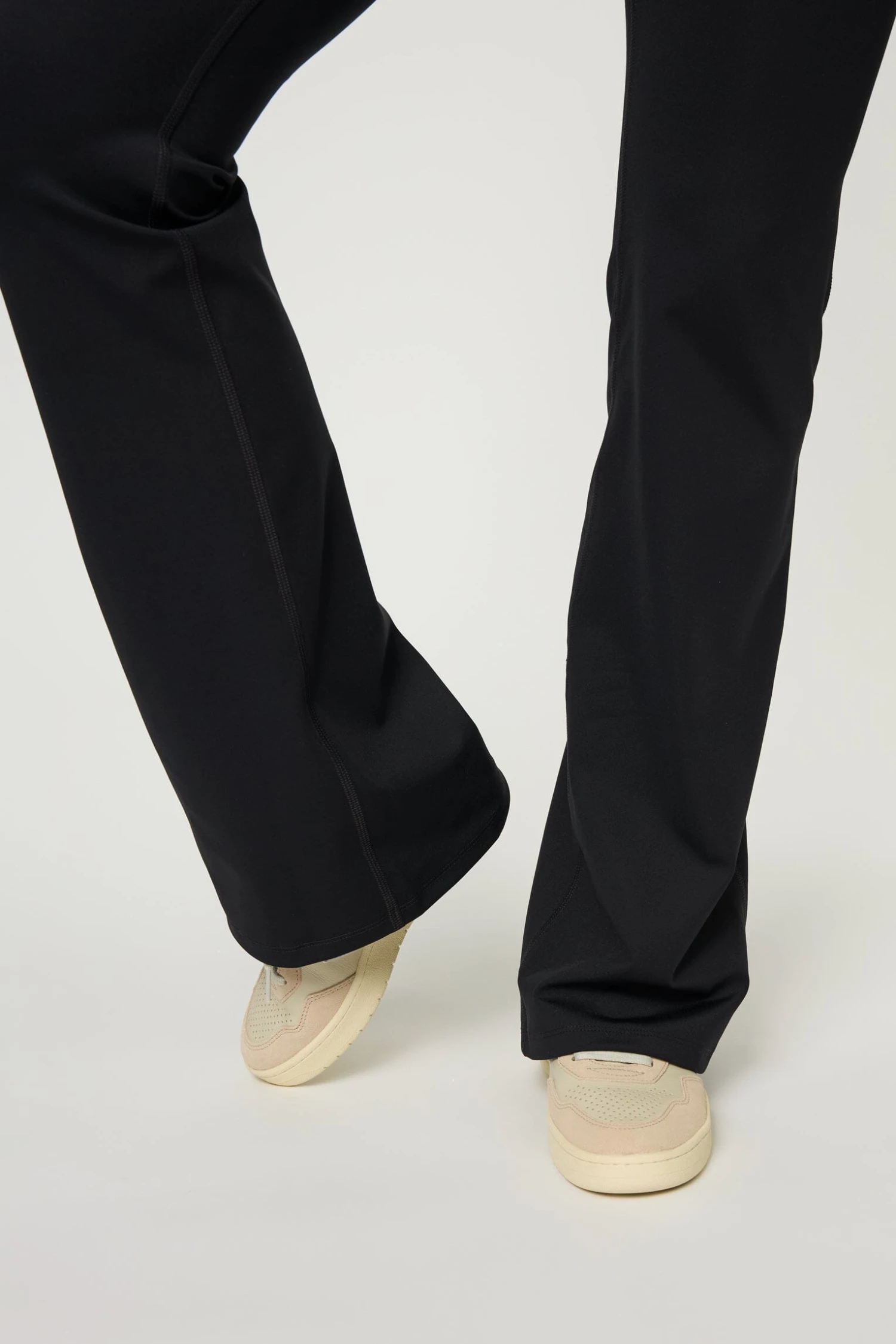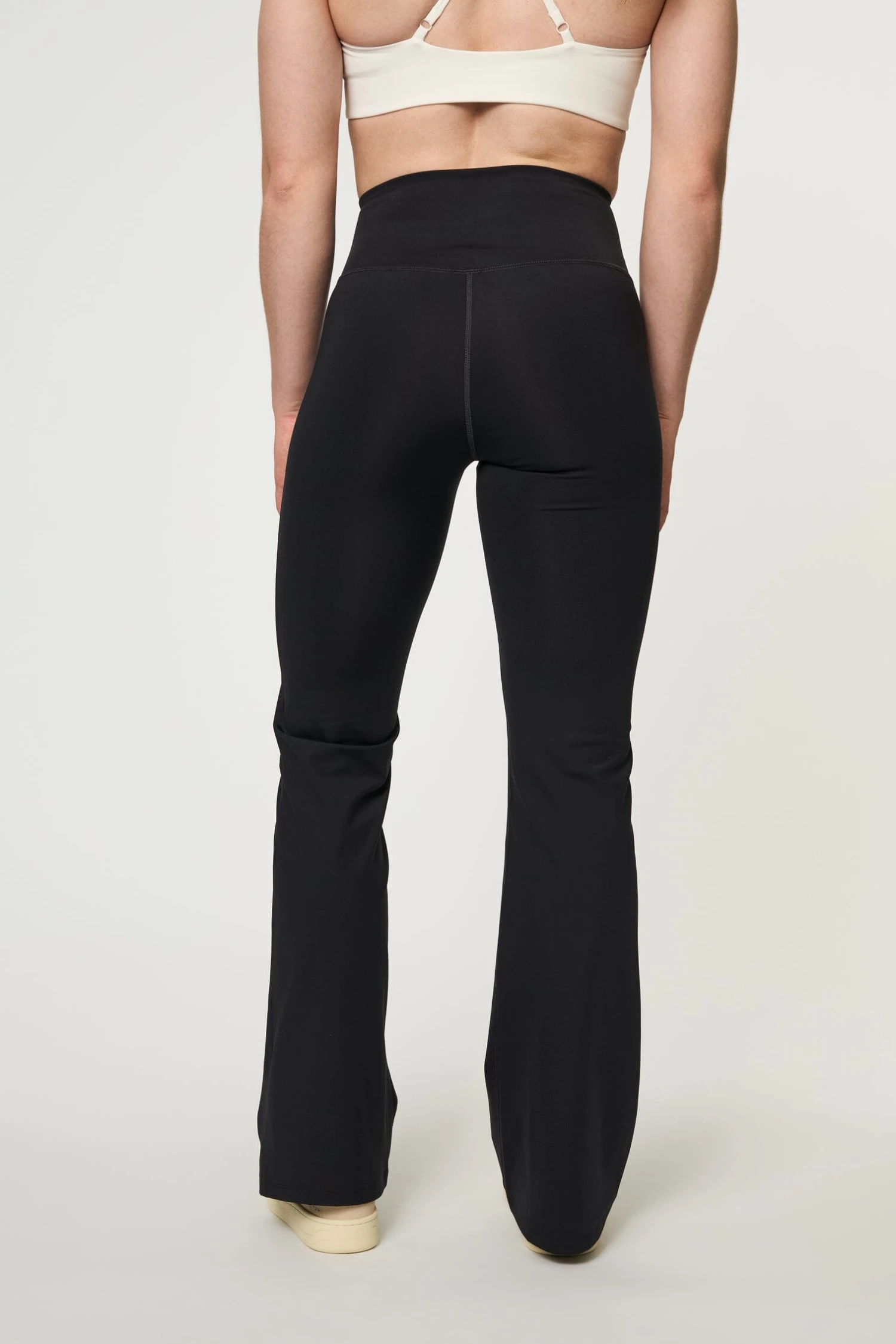 Compressive Flare Leggings in black have a relaxed flare ankle, high rise and performance-enhancing fabric that’s sweat-wicking, quick-drying and stretchy.