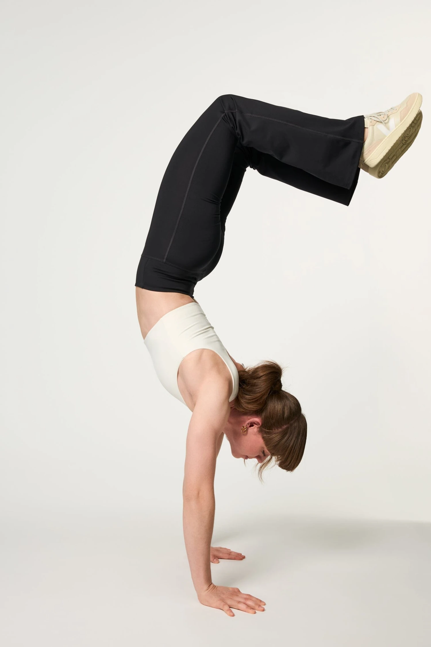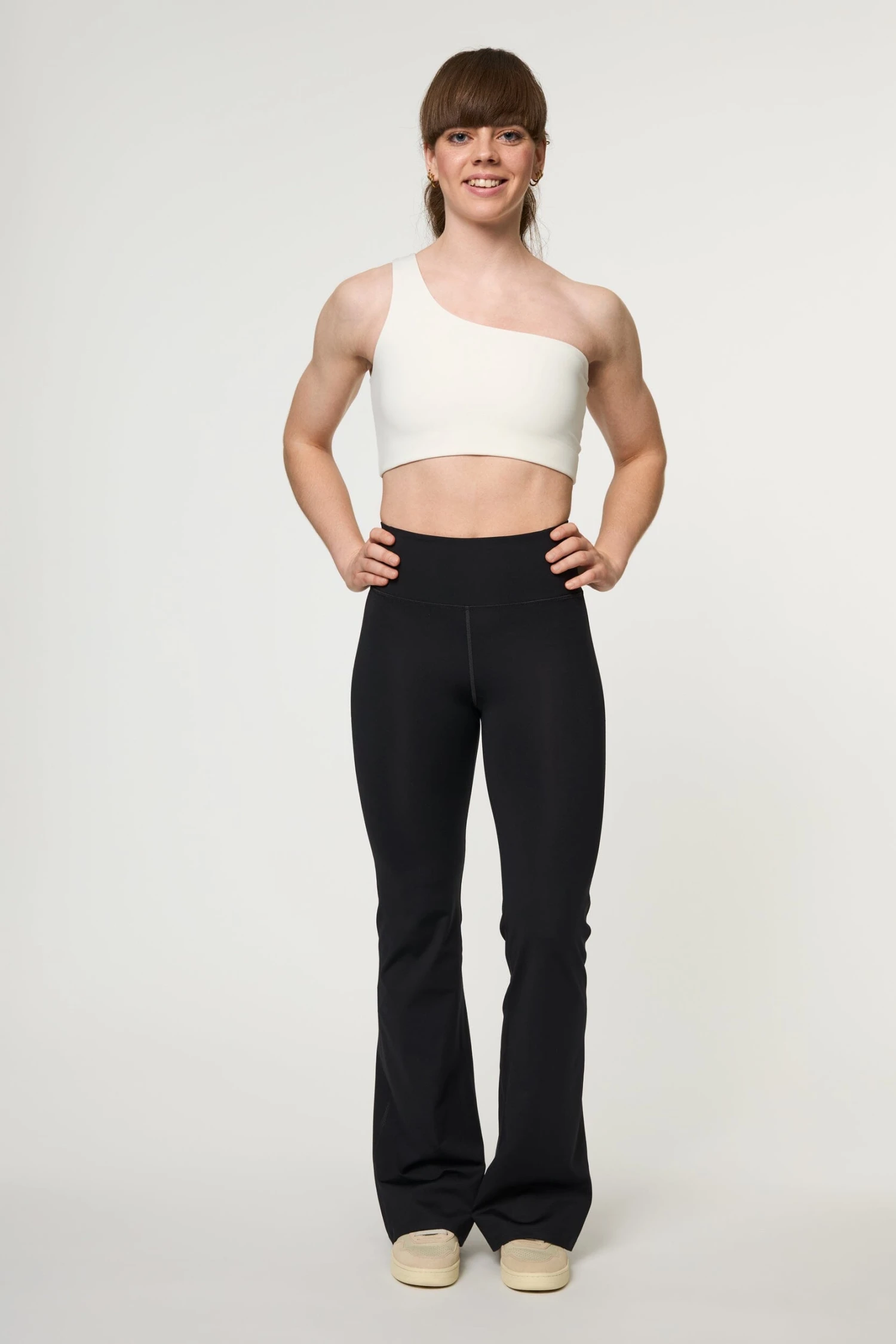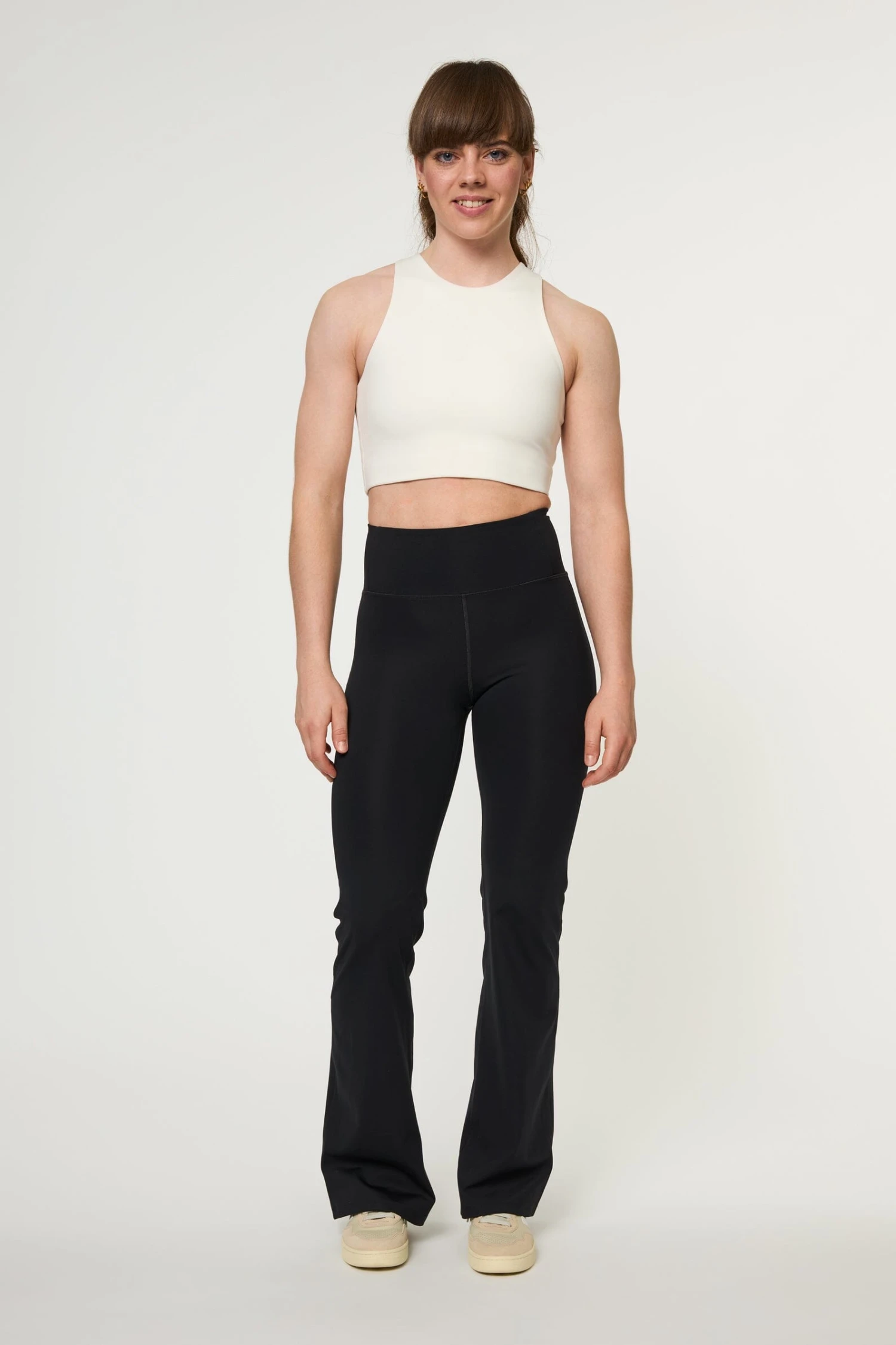 Compressive Flare Leggings in black have a relaxed flare ankle, high rise and performance-enhancing fabric that’s sweat-wicking, quick-drying and stretchy.