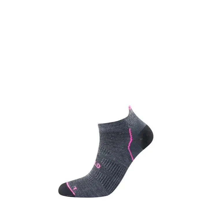 Ultra-light, silky-soft running sock, developed for optimum comfort while exercising. Comfortable knit around the ankle, and elasticated to fit snugly around the foot. Matched to the right and left feet, with a Y heel to give a stable fit. Reinforced toe and heel.