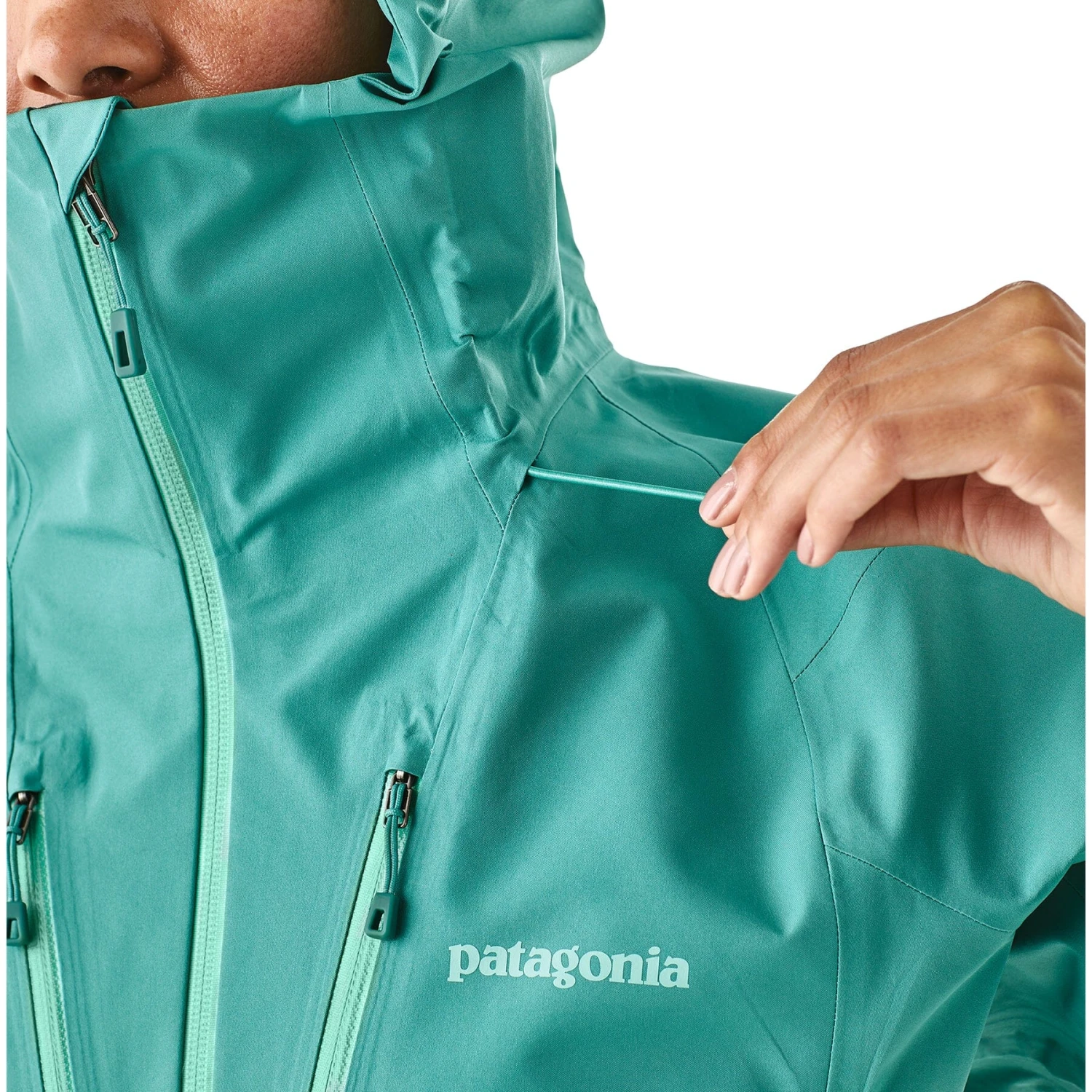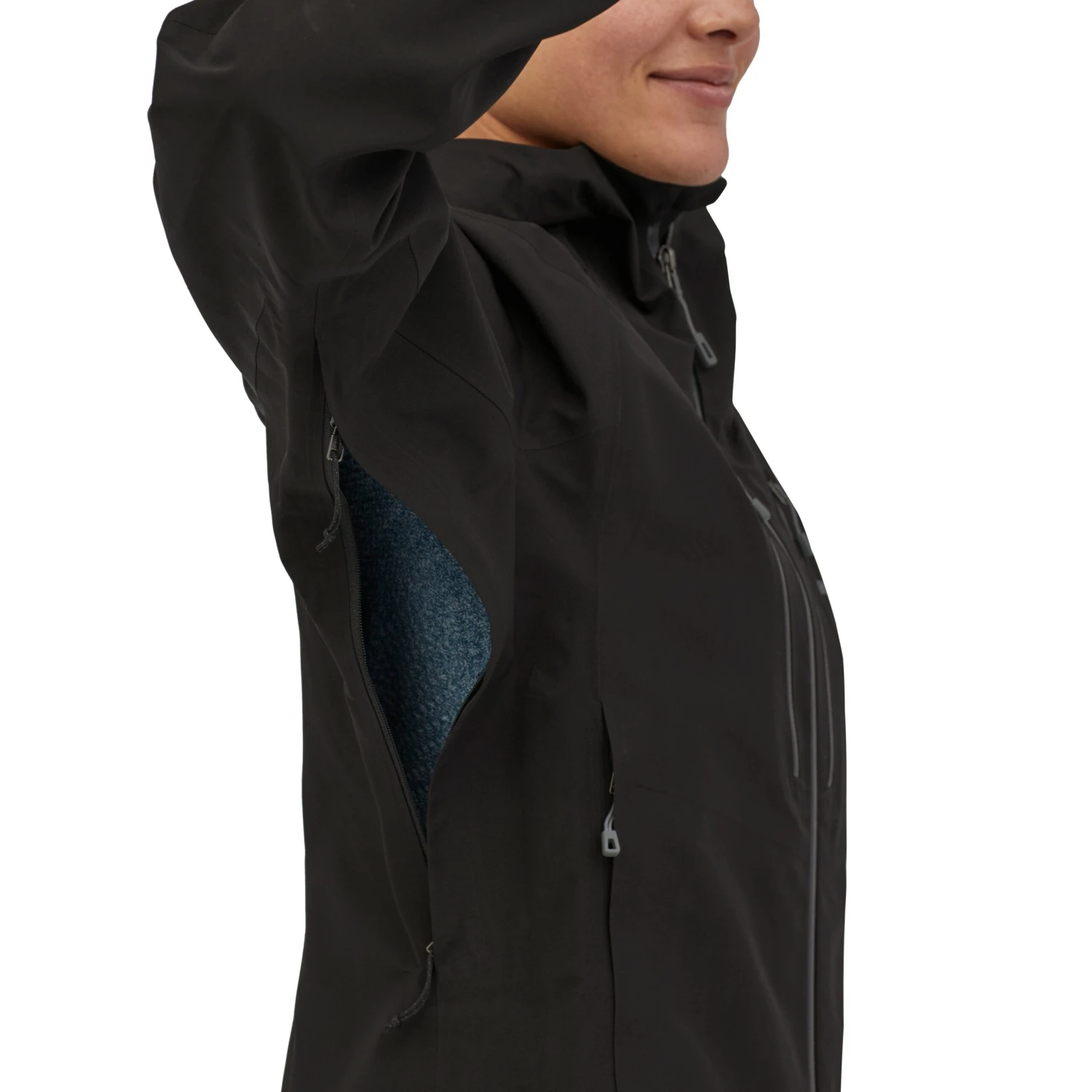 - Welted, watertight two-way pit zips provide ventilation and reach without raising the body of the jacket