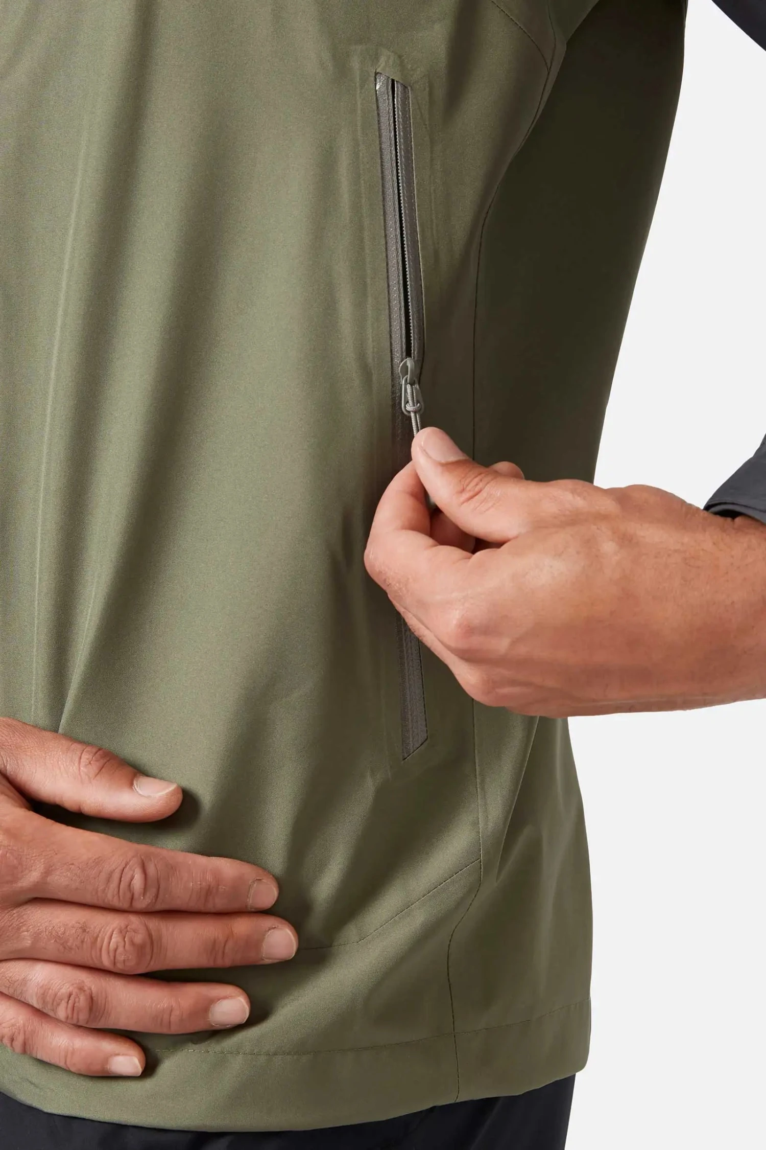 The close-fitting hood can be adjusted with one hand and features a stiffened peak to stop drizzle from impeding your vision. Seal out rough weather using the adjustable cuffs, dual-sided rear hem adjustment and front zip with fleece-lined chin guard, to keep you dry without compromising on comfort. Sleeve articulation ensures exceptional freedom of movement, while two zipped mesh-lined hand pockets double up as vents to help with airflow when the terrain conspires against you.