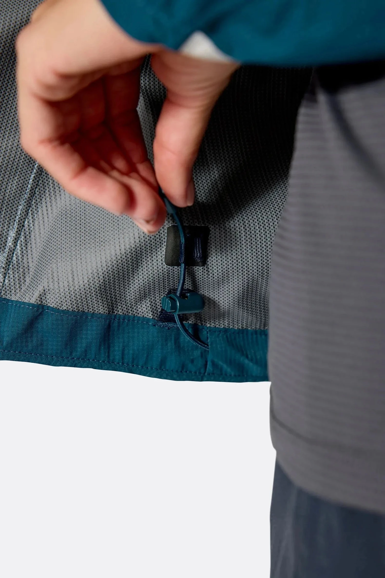 - Single side rear hem adjustment with anti-snag tether.
