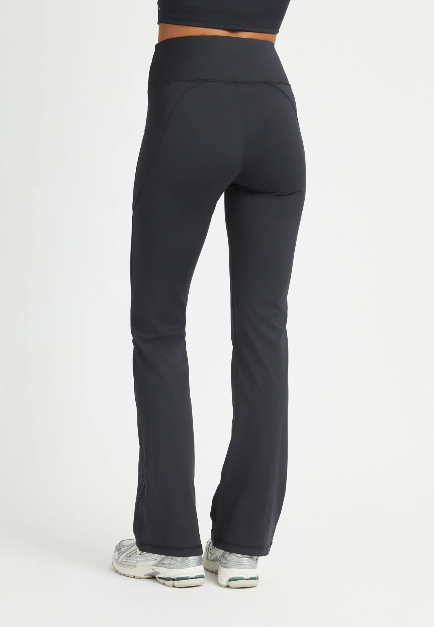 A pair of stretchy pants made in a mix of recycled polyester and elastane. It’s equipped with a breathable and moisture-wicking fabric that helps you keep cool and dry at all times. Designed with an adjustable drawstring at the inside of the waist and decorated with a Röhnisch logo text at the leg. Flattering Pants has a high waist and flared legs with an inseam measuring 78 cm.