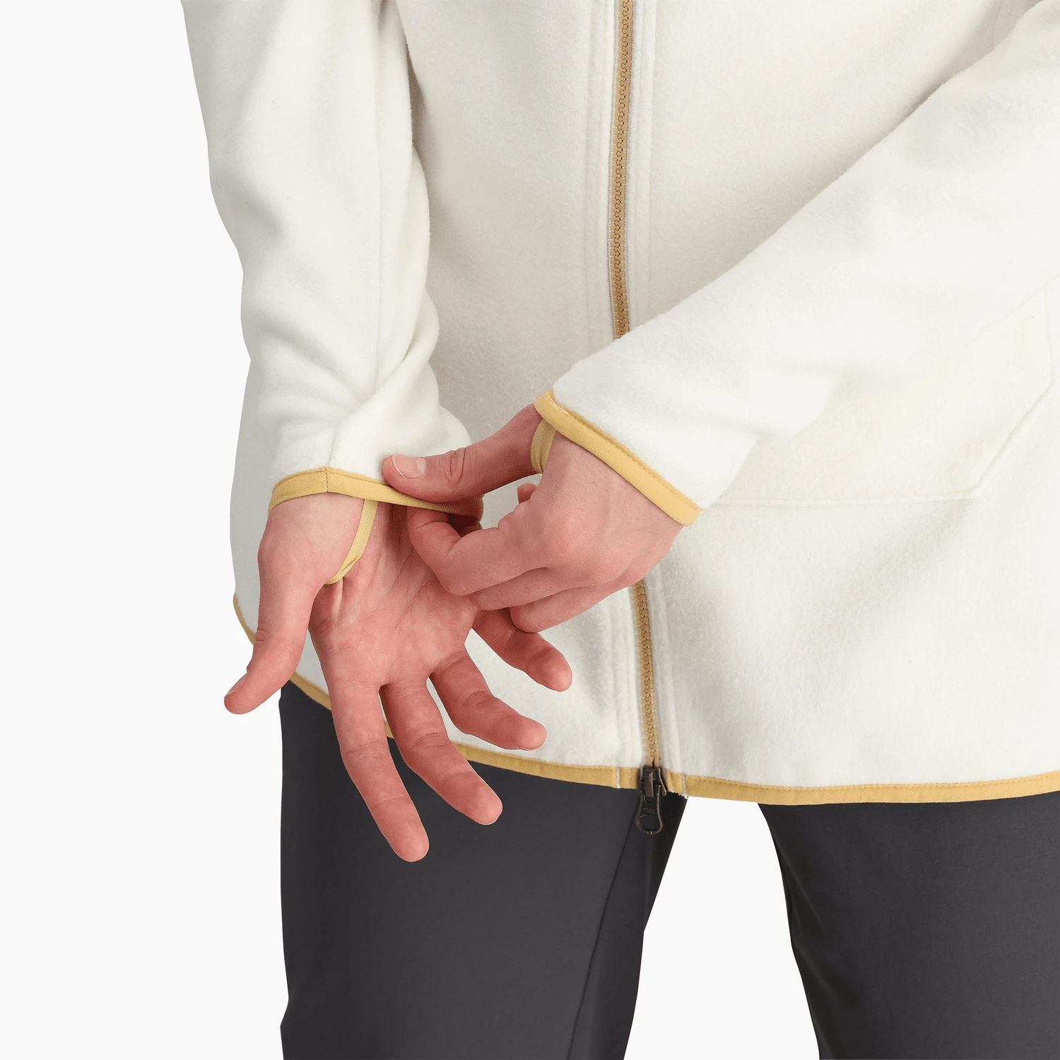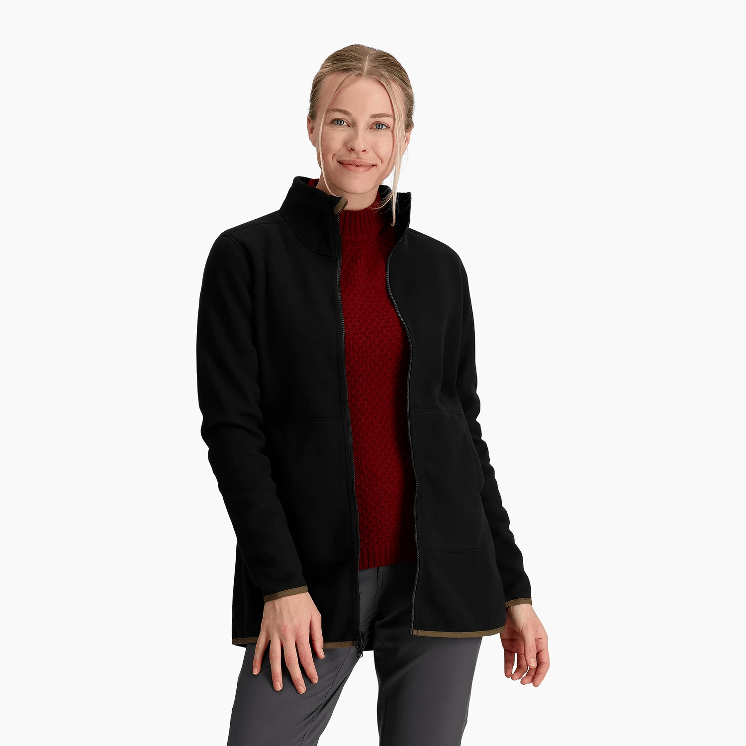 Snowy days, fall hikes, mornings at camp, hanging with friends après adventure—this is the perfect fleece for getting out and having fun. As a standalone, it cuts the chill when it’s cool out. As a midlayer, it performs in colder temps. Its extended length, tall collar, and deep hand pockets wrap you in warmth, while the minimalist design gives it a clean look and helps it layer comfortably under a shell.