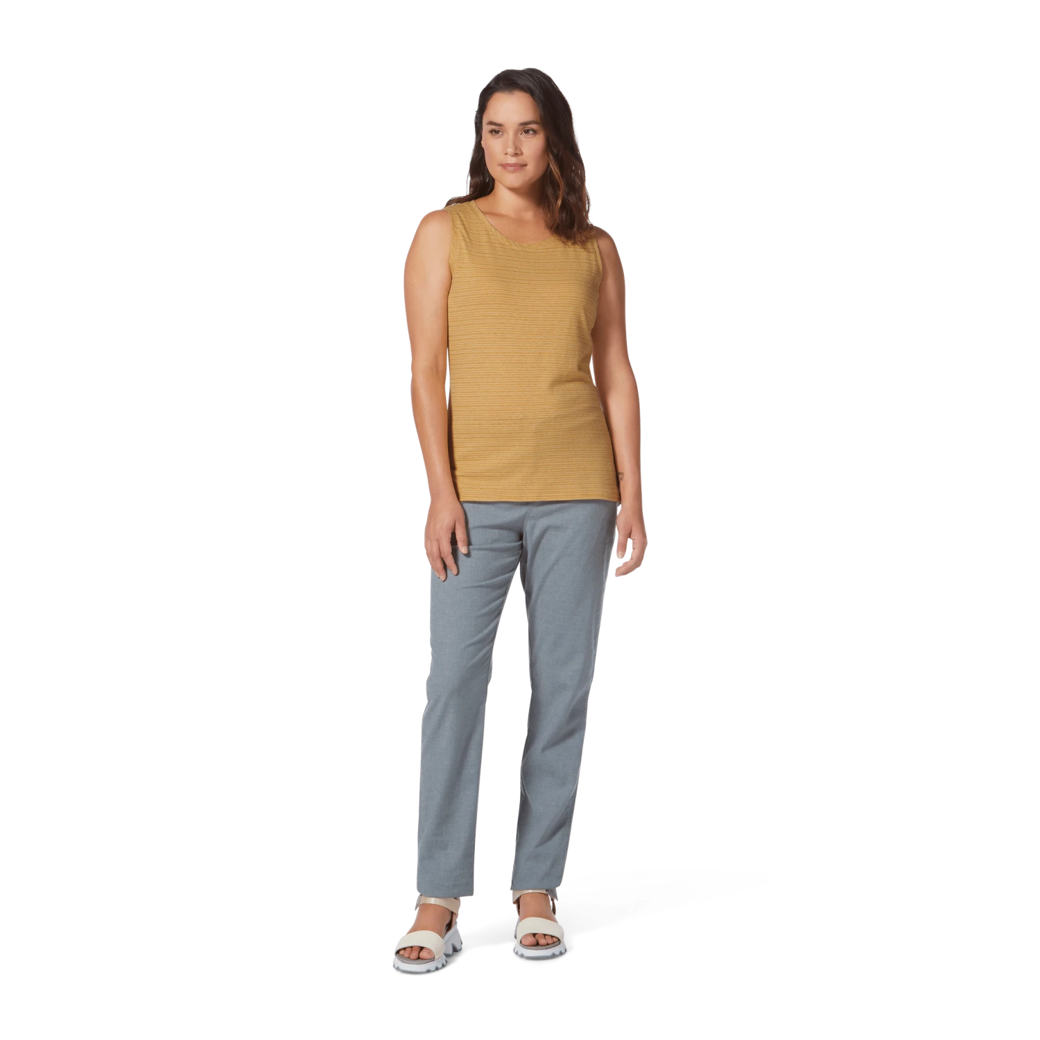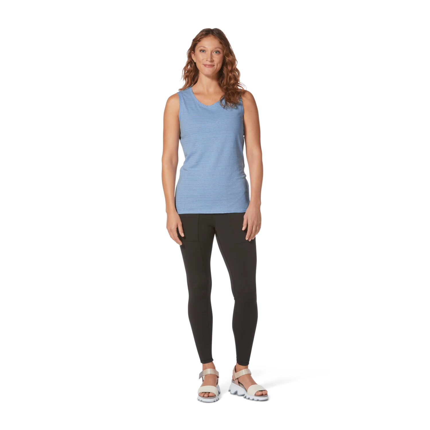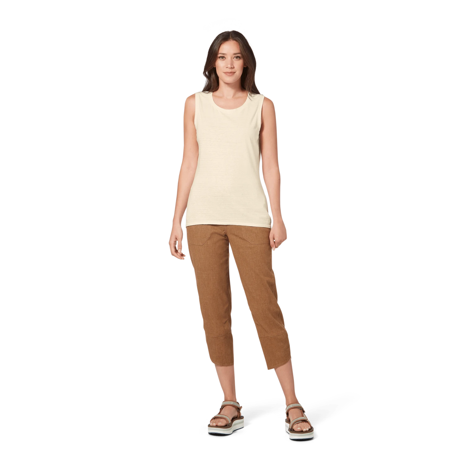What makes our Vacationer Tank stand out? It starts with the eco-conscious lightweight material that combines organic cotton comfort, recycled polyester’s technical performance, and hemp’s natural durability and odor control. Wide shoulder straps cover your bra and a high-low hem offers bonus coverage and versatility. Wear this stretch tank top tucked or untucked, with shorts or leggings, or layered under a light sweater on cooler days. Light, soft, and packable, you’ll reach for this breathable, lightweight tank top again and again for active pursuits or just cozying up on the couch.
