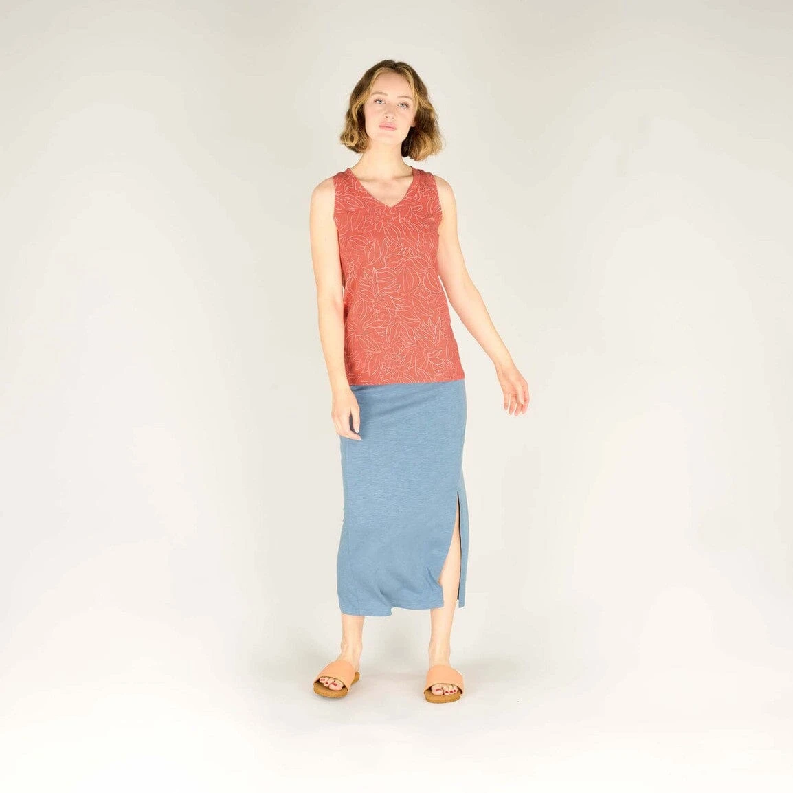 A wardrobe staple, the Neha V-Neck Tank is an easy to wear, versatile sleeveless top combining organic cotton and Modal® for all day comfort. The gentle neckline, drop back hem and soft drapey fabric create a flattering fit. With spandex for added stretch and ease of movement, this top will see you through from gentle hikes to meandering urban exploring. Team with shorts or a skort in warmer weather and on cooler days, pair it with a fleece or jacket for an extra layer. Meaning “Love” in Sanskrit, the Neha V-Neck Tank is an essential piece for any traveller.