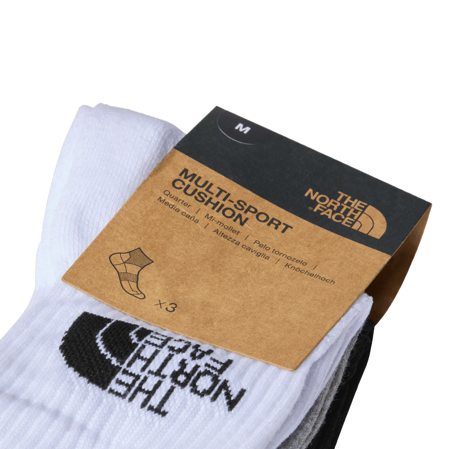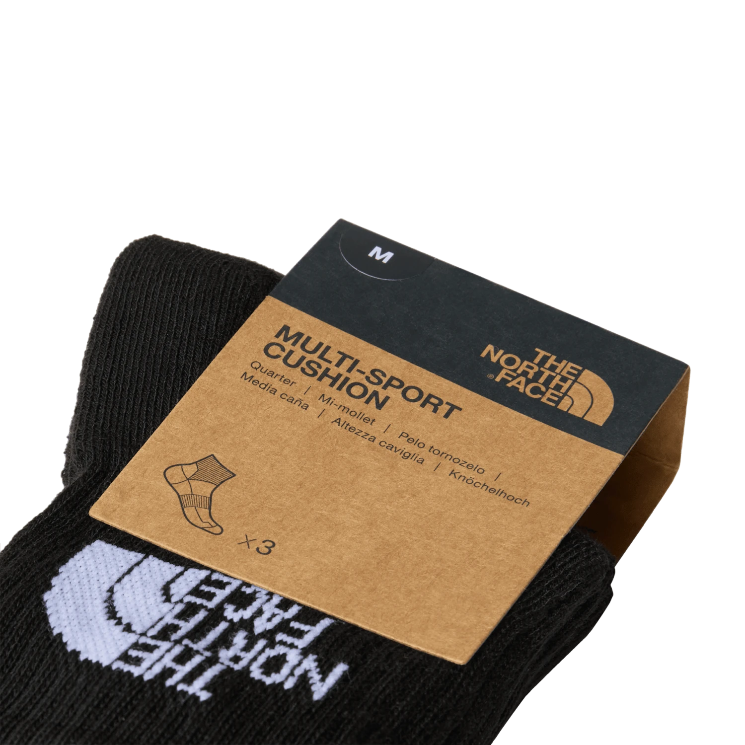 Standard fit: This garment is true to size for an easy, comfortable fit. Go further, push harder. Three-pack Multi Sport Cushion 1/4 Socks feature cushioning on the heels and toes, a slightly padded sole and targeted vent zones that keep your feet cool and ready to explore more – right up to the final mile.