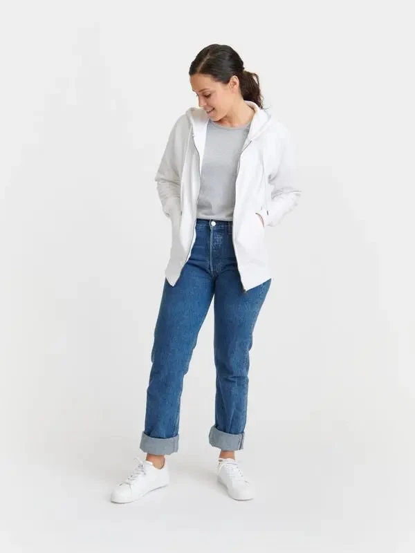 The no-stress, go-to zip hoodie from Pure Waste is made from recycled cotton and recycled plastic bottles. The hoodie has raglan sleeves, a straight cut and a low hem. The inside is soft, brushed knitted fabric. The hoodie has practical pockets and the hood is generously sized. The hood has drawstrings, which are made from excess knitting machine yarns to reduce waste. The hem and sleeve openings are ribbed. This unisex model is sold using men’s measurements. Women should choose one size smaller than usual.