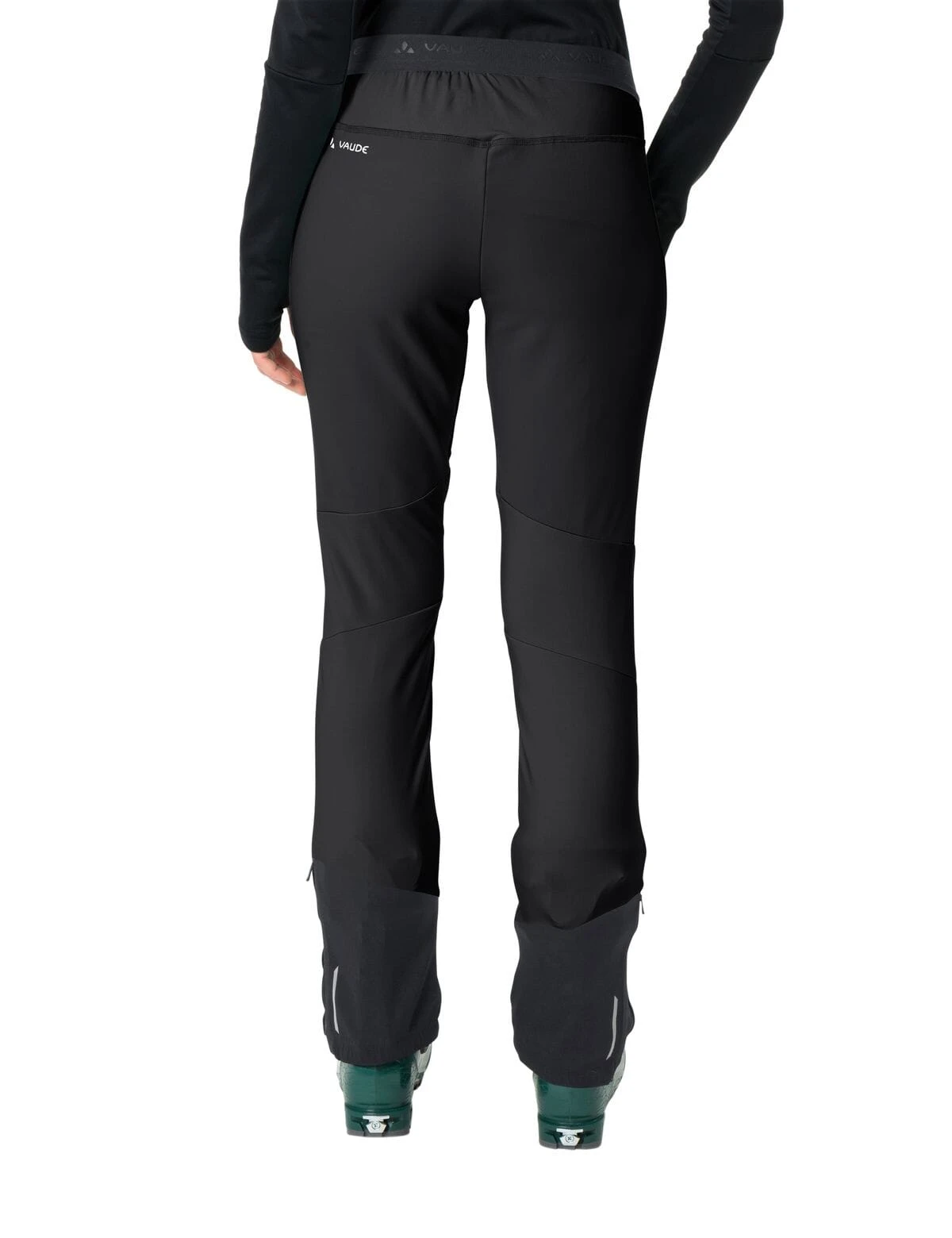 Perfect for quick training tours! These athletic, dynamic ski touring pants for women are form fitting; the intelligent material blend offers high freedom of movement and excellent breathability. High-stretch materials also keep out the wind and are extremely vapor permeable. Side ventilation zips ensure an ideal body microclimate, even during high-motion sports. The stretch leg cuffs with robust Cordura abrasion protection are a breeze to pull over ski boots. The women’s softshell pants feature decorative reflective elements. This product is made with water resistant Eco Finish that’s manufactured without the use of fluorocarbons (PFC). The VAUDE Green Shape label stands for environmentally-friendly, functional products made from sustainable materials. As a member of the independent Fair Wear organization with Leader Status, VAUDE is committed to fair working conditions and fair wages. In addition, this product is climate neutral – they’ve analyzed and systematically reduced all emissions arising from materials, manufacturing, and shipping. Emissions that are currently unavoidable were fully offset by the independent non-profit myclimate organization.
