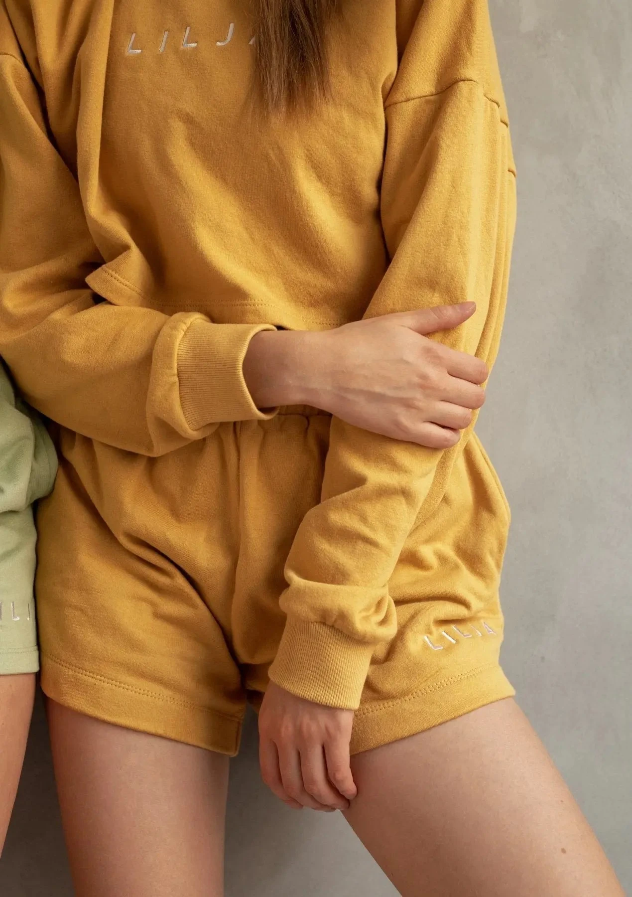 Our cropped sweatshirts are made from the softest 100% organic cotton. The oversized fit is comfortable and flattering and the cropped length makes it easy to pair with our biker shorts or our high-waisted tights in multiple colours. These shirts are perfected with white embroidered Lilja logo in the front and come in three different earthy colours for you to find your favourite from. Wear them for the warm-up of your gym class, for a walk with a friend or for make up a casual look and pair the crop with a pair of jeans.