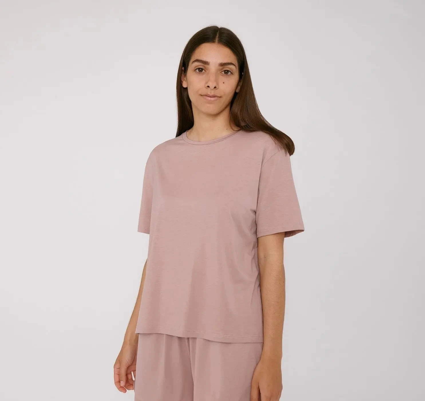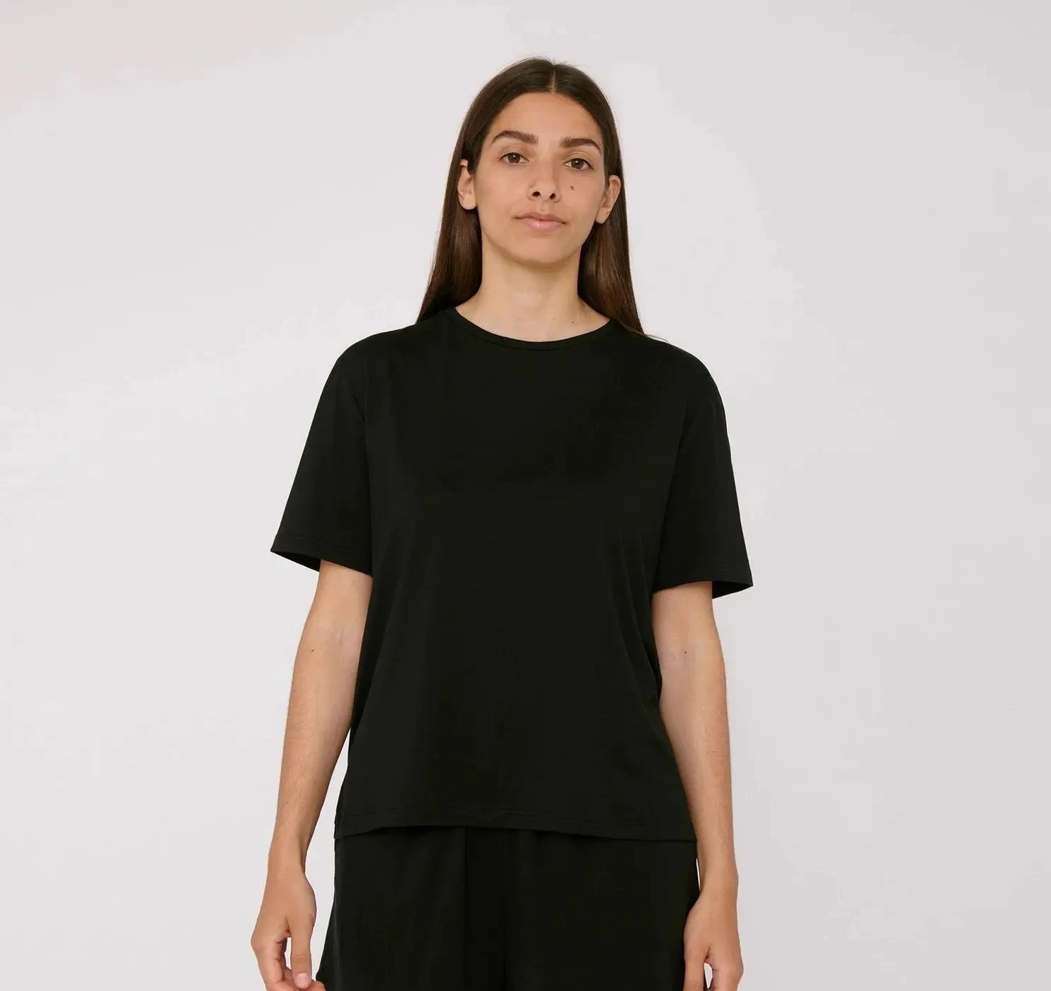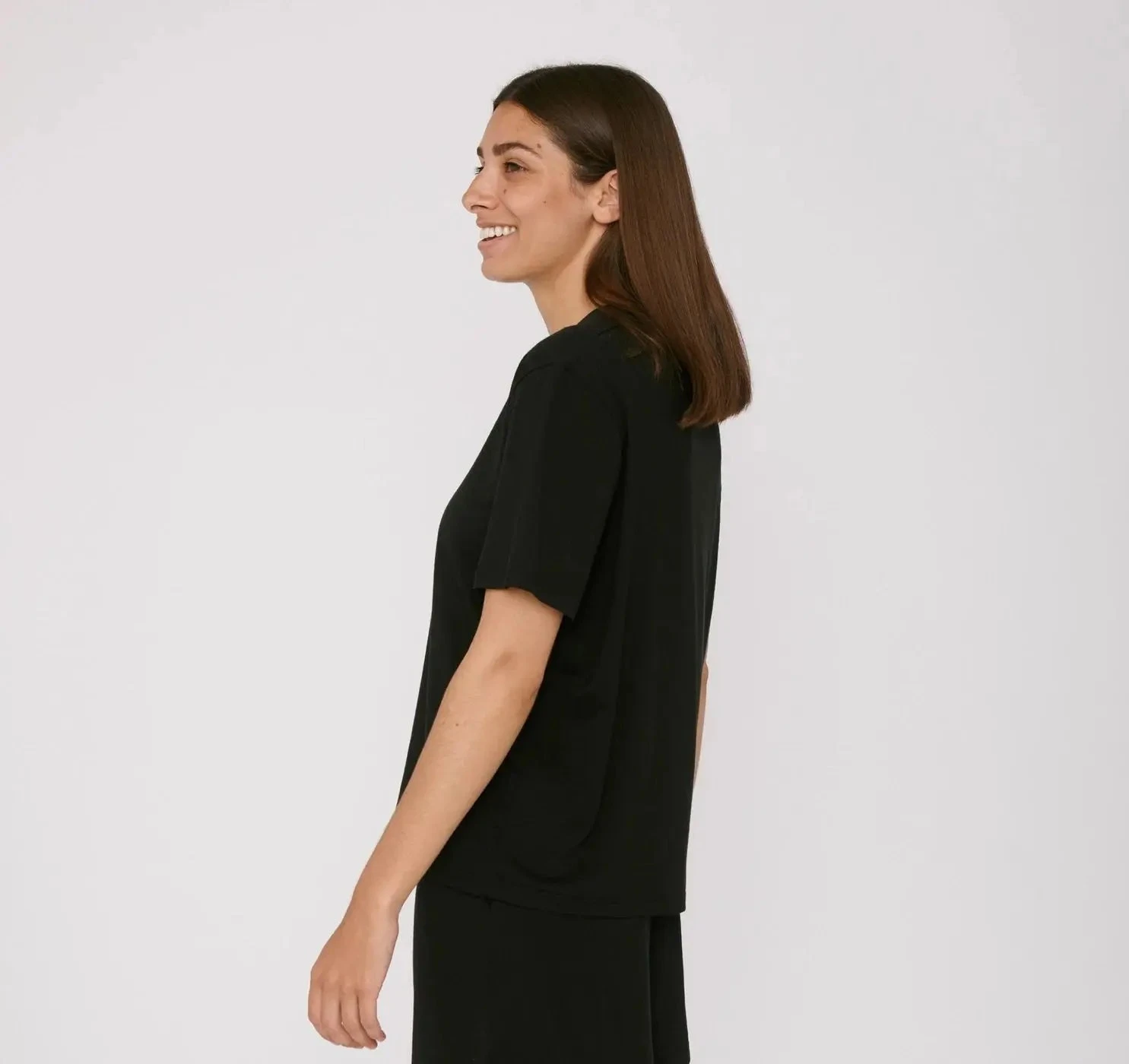 - A soft, slightly cropped crewneck tee made with an eco-friendly wood pulp fiber called TENCELâ„¢